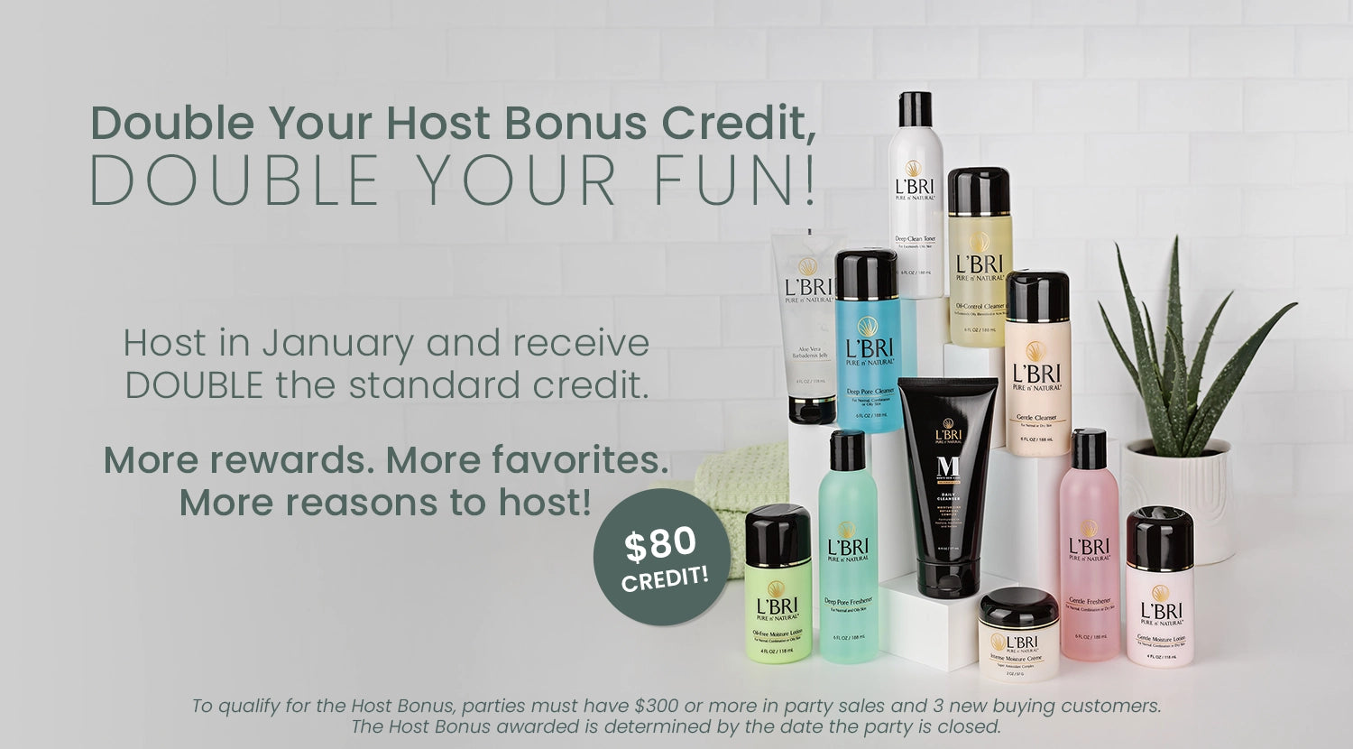 *A qualified Party includes a Host and $300+ in party sales. Hosts pay tax and shipping on the Free Host Gift, half-price products and products purchased with L’BRI Credit. Booking credits are awarded to qualified Parties closed within 45 days of the original Party date. Self-Hosted shows are not eligible to earn half-priced products or booking credits. All other rewards apply.